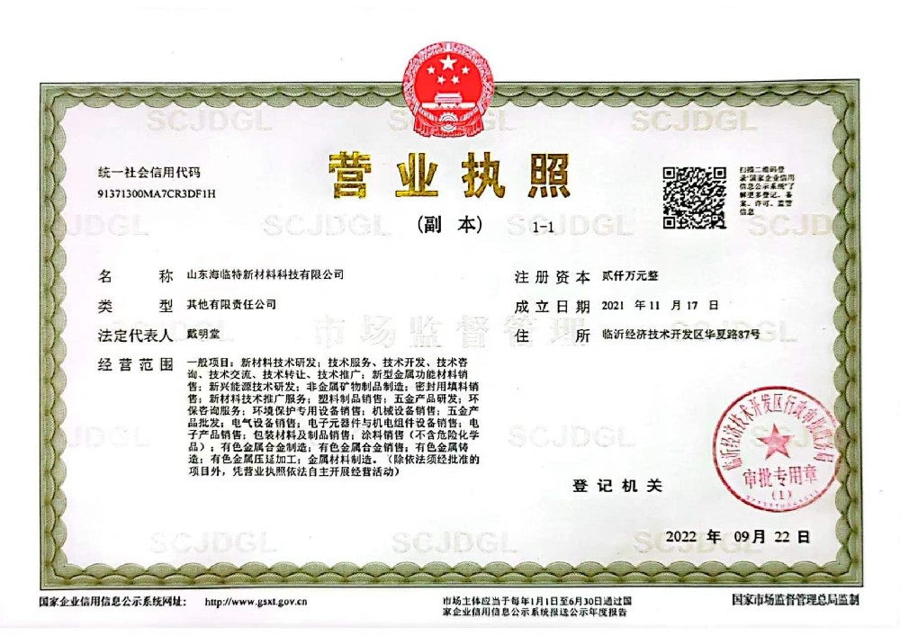 山东海临特新材料科技有限公司成立于2021年11月,是专注于从事新能源领域内新型材料的生产企业。公司与日本企业技术合作、采用日本先进的生产工艺技术及材料,是新能源汽车行业里新能源动力电池领域中使用导电涂层铝箔和铜箔的生产厂家。